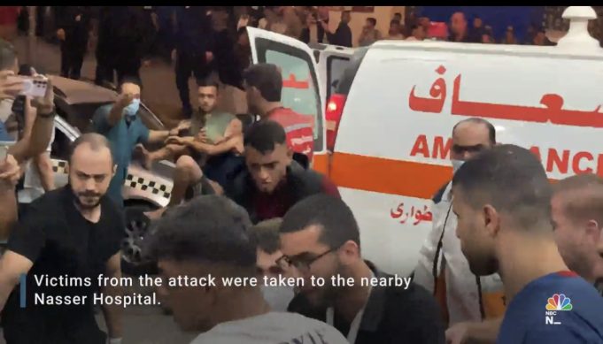Tentera Israel pula telah menuduh Hamas menghalang orang ramai daripada “keluar dari bahaya” dan sekali lagi menasihatkan orang Palestin untuk berpindah ke “zona selamat” di selatan Gaza. Perdana Menteri Israel, Benjamin Netanyahu, juga telah menyalahkan Hamas atas letupan yang berlaku di hospital al-Ahli di Bandar Gaza pada hari Selasa, yang dikatakan disebabkan oleh roket yang dilancarkan dengan salah oleh Hamas. Hamas pula telah menafikan tuduhan itu dan menuduh Israel melakukan serangan udara ke hospital itu².